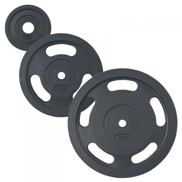 - De Premium halterschijven met openingen zijn verkrijgbaar in de gewichtsklassen 2,5kg, 5kg, 10kg, 15kg, 20kg en 25kg