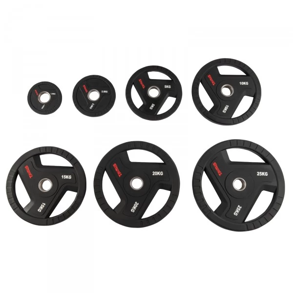 De Taurus TPU Halterschijven 50 mm zijn kwalitatief hoogwaardig en geschikt voor gebruik met halterstangen met een boring van 50 mm. TPU (thermoplastisch polyurethaan) is een slijtbestendig en geurloos speciaal plastic, dat de halterschijven optimaal beschermt en ervoor zorgt dat ze zeer duurzaam zijn en lang meegaan. De halterschijven van 5 kg hebben speciale grepen die het heffen en vervoeren van de gewichten makkelijk en veilig maken. Dankzij de afgeronde roestvrijstalen ring rond de houder kan je de halterschijven makkelijk bevestigen. Doordat de Taurushalterschijven verkrijgbaar zijn van 1,25 kg t/m 25 kg, zijn ze zowel geschikt voor beginners als ervaren sporters.